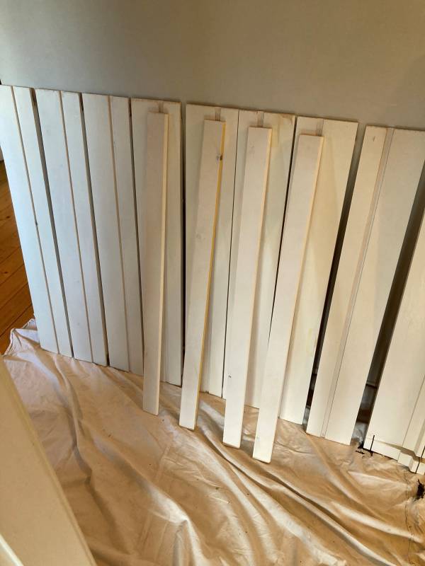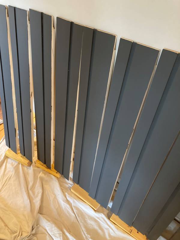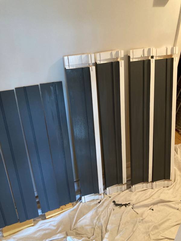 Multiple replacement sill parts being painted.